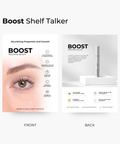 A retail display with 9 dedicated slots to showcase lash lift and lash extension aftercare products like Renew, Boost, and Impact. Each display includes a removable shelf talker to highlight product benefits and educate clients. Additional shelf talker cards are available separately to customize your display for different products.